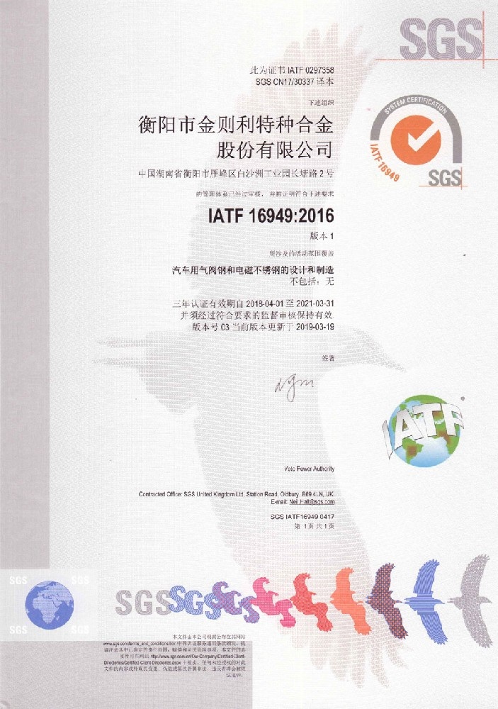 衡陽市金則利特種合金股份有限公司成立于一九九九年十二月,注冊資本人民幣兩千兩百萬元。注冊地址:衡陽市雁峰區(qū)白沙洲工業(yè)園長塘路2號。公司主營耐蝕軟磁合金,為湖南省高新技術企業(yè)。公司自成立以來,即致力于耐蝕軟磁合金的研發(fā)。 研制出的JL-31(00Cr13si2Pb)、JL-31B(00Cr13si2)、JL-31BS(00Cr13Si2S)、JL-37B(0Cr17Si2)、JL-37(0Cr17···